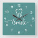 Relógio moderno do escritório Dentista em uma design de tendências, incluindo um símbolo de dente e um gráfico de sorriso desenhado com tipografia na moda gráfica e cor de fundo que você pode mudar se precisar. Projetado para um escritório de odontologia para encorajar sorriso e atitude positiva.