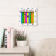 Relógio do professor, design de múltiplos lápis de cor brilhante. Os lápis desenhados pelo artista e com um ligeiro efeito 3D, fundo branco.