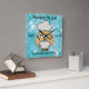 Um relógio bonito na parede azul com coruja e engraçado dizendo: "Encheirar o cozinheiro resultará em porções menores." Texto totalmente personalizável.