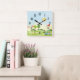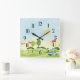Relógio quadrado para um golfista com campo de golfe e carrinho de golfe.