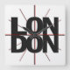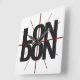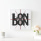 Este relógio do muro de Londres foi projetado para fazer parte de um conjunto de fusos horários globais que um escritório pode ter que exibir no mundo inteiro. Também pode ser usado como um relógio de cozinha ou decoração para a casa moderna de Londres. A design é ligeiramente tridimensional para adicionar um pouco de profundidade à inscrição.