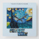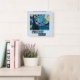 Um relógio de parede com obra de arte inspirada na Noite Estrelada de Van Gogh.