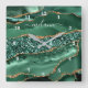 Quadrado Relógio de Nome do Marble do Geodo Glitter Verde D