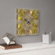 O relógio amarelo e claro da parede de vidro, brilhante, metálico, iluminará qualquer local onde esteja exposto.relógio colorido da parede quadrada