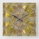 Quadrado Relógio de paredes de vidro transparente e amarelo