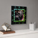 Este leitor de discos antigos tem um antigo recorde preto de vinil nele. Com uma camada cor-de-rosa. Antigo braço metálico com grande agulha de gravador antigo.Este relógio tem números marrons abstrato de 1 a 12.E um quadro abstrato e o fundo preto. A cor de fundo pode ser alterada para qualquer cor que você queira que ela seja com a marca personalizada.