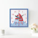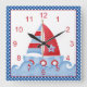 Personalize este relógio grande e ousado da parede do veleiro perfeito para o quarto de uma criança ou de férias com um monograma. Basta editar no editor de texto fácil do Zazzle. Também disponível com bolinhas vermelhas. Marinheiro branco e azul esbranquiçado em fundo azul de bolinhas criado em parte com gráficos por Kristi W comprado em www.digiwebstudio.com.