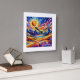 Uma "montanha de vidro manchado" evoca a beleza de uma majestosa cordilheira, como se fosse vista através dos intrincados e coloridos padrões de uma janela de vidro manchado. Os picos esmagados são divididos em painéis de matizes vibrantes — blues, púrpura, verde e dourados — cada um capturando a luz e as estações em constante mudança. A luz solar filtra através destes fragmentos coloridos, criando um brilho radiante, quase de outro mundo, que destaca os detalhes e sombras da montanha. O efeito é como se toda a paisagem fosse um mosaico, com cada fragmento representando um pedaço da complexidade da natureza, misturando precisão geométrica com formas orgânicas de rocha e céu.