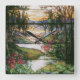 A bela e vintage Art Nouveau Tiffany Stainha Glass Window A reprodução de uma cena natural está neste excelente Wall Clock.