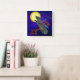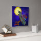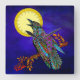 Silhueta de corvo desenhada e pintada em uma mão sobre uma lua de outono - da minha série de Arte Elétrica.