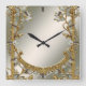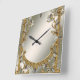 Quadrado Relógio Floral Branco do Ornamentado Dourado