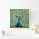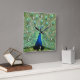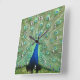 Peacock é tudo "olhos" na hora. De pé orgulhoso, a ave tem penas verdes brilhantes acentuadas com os centros azuis reais e penas de cabeça e corpo de azul. Os algarismos brancos com sombra está na borda.