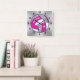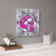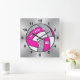 Quadrado Relógio Personalizado de Voleibol, Rosa, Branco, P