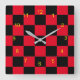 Quadrado Relógio - Quadro de verificação vermelho e preto
