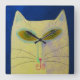 Quadrado Relógio Redondo Abstrato de Gato Amarelo