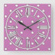 Quadrado Relógio Roxo com Pontos Brancos e Detalhes