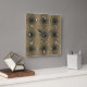 Cabeça seca de girassol com sementes escuras no meio. A imagem é unida para mostrar a geometria das naturezas em 9 quadrados repetitivos. Numerais são brancos.