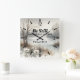 Quadrado Relógio Tranquilo com Temas de Inverno com Verso d