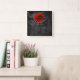 Rosa vermelha em papel preto distante como fazer de fundo um relógio quadrado quirky