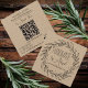 Vinhas De Fio Feitas À Mão | Cartão de visita Kraft artesanal — Possui vinhas de cobertura de folhas formadas em uma coroa na frente do cartão, juntamente com seu nome comercial e endereço do site. No verso há um código QR personalizável junto com seus outros detalhes comerciais. A parte inferior direita apresenta uma variedade de ícones de mídia social — você pode usá-los para esse fim, trocá-los por ícones da sua escolha ou excluí-los completamente. Todas as cores, texto e fundo são editáveis.