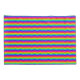 Um design com diferentes quadrados coloridos arranjados num arco-íris.