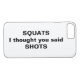 Esta engraçada capas de iphone preto-e-branco é decorada com a citação, Squats, pensei que você disse Shots, fazer a inveja na academia e perfeita para seu próximo treino.