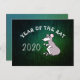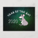 Ilustração fofa de um rato em estilo quadrinhos com 2020 e "Ano do Rato" para personalizar se desejar em imagem metálica verde como fundo. Design em cartão postal horizontal. Cartão de saudação correspondente, produtos artesanais e mais...