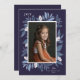 Este cartão de feriado com uma fotografia contém borda botânica com folhas e bagas pintadas à mão.