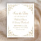 Este elegante casamento formal inspirado na vintage salve o cartão de data com o texto em letras douradas e fontes serif, enquadrado por um delicado motif vintage de ouro. O quadro é repetido no reverso.