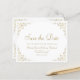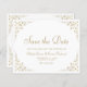 Este elegante casamento formal inspirado na vintage salve o cartão de data com o texto em letras douradas e fontes serif, enquadrado por um delicado motif vintage de ouro. O quadro é repetido no reverso.