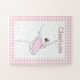 A Quebra-cabeça de Ballerina Rosa Dançante pode ser personalizada com o nome da sua pequena bailarina favorita. O quadro cor-de-rosa corresponde ao tutu cor-de-rosa.