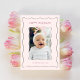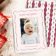 Este charmoso Cartões de foto de Natal personalizável apresenta um modelo de fotograma ondulado com arco cor-de-rosa e faixa burgundy atrás. Mostre sua foto favorita da família e adicione elegância e calor aos seus Cartões de natal.