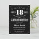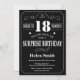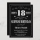 Surpresa no 18º Aniversário do Quadro de Convite. Fundo preto e branco. Aniversário Adulto. Homens ou Mulheres Aniversário. Menino ou Menina Menina Menina Adolescente Convidam. 13 15 de 16º 18º 20 21rua 30 de 40º 50º 80 de 60º 70 de 100º. Qualquer Idade. Para mais personalização, clique no botão "Personalizar" e use nossa ferramenta de design para modificar este modelo.