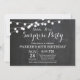 Surpreenda 60º Convite de Aniversário com Fundo de Quadros de Chalkboard das Luzes de String. 13 15 16º 18º 18º 21rua 30 40º 50º 60º 70 80 100º, qualquer idade. Para mais personalização, clique no botão "Personalizar" e use nossa ferramenta de design para modificar este modelo.