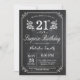 Convite para aniversário de 21 anos surpresa com fundo de chalkboard russo e padrão de flauta floral, preto e branco. Aniversário Adulto. Homens ou Mulheres Aniversário. Meninos Meninos ou Meninas Meninas Meninas Adolescentes Convidam. 13 15 16º 18º 20 21rua 30 40º 50º 60º 80 de 70 100º. Qualquer Idade.