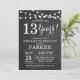 13 Birthday Invitation Chalkboard Background com Luzes de String. Preto e Branco. 13 15 16º 18º 20 21rua 30 40º 50º 60º 80 de 70 100º, qualquer idade. Aniversário Adulto. Mulher ou Festa de aniversário masculina. Para mais personalização, clique no botão "Personalizar" e use nossa ferramenta de design para modificar este modelo.