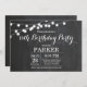 Convite de aniversário de 13 com luzes de cordas Fundo do quadro. 13 15 16º 18º 18º 21rua 30 40º 50º 60º 70 80 100º, qualquer idade. Para mais personalização, clique no botão "Personalizar" e use nossa ferramenta de design para modificar este modelo.