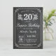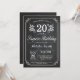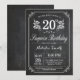 Convocação de aniversário de 20 surpreendido com fundo de quadro de chalkboard russo e padrão de flores flóricas, preto e branco. Aniversário Adulto. Homens ou Mulheres Aniversário. Menino ou Menina Menina Menina Adolescente Convidam. 13 15 de 16º 18º 20 21rua 30 de 40º 50º 80 de 60º 70 de 100º. Qualquer Idade. Para mais personalização, clique no botão "Personalizar" e use nossa ferramenta de design para modificar este modelo.