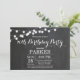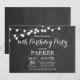 Convite de aniversário de 70 com luzes de cordas Fundo do quadro. 13 15 16º 18º 18º 21rua 30 40º 50º 60º 70 80 100º, qualquer idade. Para mais personalização, clique no botão "Personalizar" e use nossa ferramenta de design para modificar este modelo.
