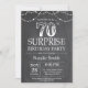 Surpresa 70 de Aniversário com Chalkboard Black and White Background. Luzes de Corda. Aniversário Adulto. Homens ou Mulheres Aniversário. Para mais personalização, clique no botão "Personalizar" e use nossa ferramenta de design para modificar este modelo.