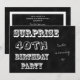 É um convite de aniversário moderno surpreendente com um talento vintage! Sim, este design tem tudo. Apresentando um estilo de tipografia divertido na frente com um fundo de quadro em que as palavras "PARTIDO DE aniversário de 40 anos SURPRESA" estão escritas, você pode personalizar a frente com o nome da honra de aniversário. O fundo do convite tem outro quadro e pode ser personalizado com todos os detalhes e lembra aos convidados que é um 40º segredo! Direitos autorais