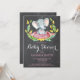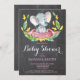 Chá de fraldas de Elefante para Garotas, Cartão-Quadrado e Rosa. Chá de fraldas De Garotas Convidam. Flor Floral de Água e Sair.