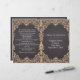 Moldura de folha de rolagem de pêssego de coral ventilado e cerimônia de casamento de quadro-negro e programa de festas com moldura de vintagem de coral em um quadro de cinza de carvão ou fundo de quadro-negro e seu texto. Uma abordagem moderna e contemporânea a um tema antigo. Este modelo é parte de um casamento, é totalmente personalizável e pode ser personalizado. Você terá que dobrá-lo no centro. Escolha apenas este tipo de valor de papel à medida que ele se dobra bem.