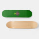 Este skate incrível apresenta um desenho engraçado de um peru de Natal com grandes olhos pretos, um pequeno bico amarelo e penas de cauda grudadas. Os pés estão voltados em direções opostas, fazer o peru parece desajeitado. O peru está vestindo um chapéu de Papai Noel vermelho e branco e está pronto para o Natal.