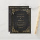Este elegante convite de casamento apresenta uma imagem de ouro vintage em um fundo afrodescendente em imitação de um antigo cobrir de livro. Personalize o texto dourado com seus nomes e detalhes de casamento. O verso repete o modo do quadro e fornece espaço para detalhes do casamento, juntamente com um código QR que os convidados podem digitalizar para visitar seu site e RSVP, o que economiza o custo de imprimir e enviar cartões RSVP separados.