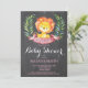 Rosa do convite do chá de fraldas do leão da menina e cartão do quadro. O chá de fraldas da menina convida. Flor floral e licença da aguarela. Para uma personalização mais adicional, clique por favor "personalizam-no" botão e usam-nos nossa ferramenta de design para alterar este modelo.