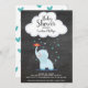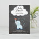Comemore a mamã para ser e o bebê com este convite bonito do chá de fraldas que caracteriza um elefante do bebê que está sendo regado com o amor e os corações e ajuste-os contra um fundo preto do quadro. Adicione seus detalhes do partido para personalizar. Bonito e divertimento contudo simples e clássico - igualmente aperfeiçoe para um chá temático da selva.