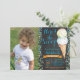 Convite do aniversário do sorvete com foto feita sob encomenda. Convite de aniversário do sorvete da menina ou do menino. Fundo do quadro. Está aqui a colher. Verão. Primeiro aniversário, ø ò ó 4o 5o 6o 7o 8o 9o 10ns, algumas idades. Para uma personalização mais adicional, clique por favor "personalizam-no" botão e usam-nos nossa ferramenta de design para alterar este modelo.