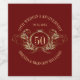 Elegante design de 50 anos de casamento. Dourada e prata com uma coroa. Fundo vermelho escuro e alterável e modelo de texto personalizável.