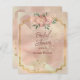Uma linda Rosa Rosa Rosa Rosa-Rosa-Satin senta-se numa armação colorida dourada com um fundo claro de um rosa contrastante. Um texto muito cor de arbusto é bonito nos tons cor-de-rosa deste convite.